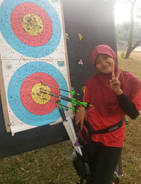 “Tadinya aku suka sekali berlatih badminton. Tapi setelah papa menawarkan untuk memperdalam olahraga panahan, ya aku suka sekali. Karena sejak dulu sudah kepingin olahraga panahan”, tutur dara yang saat ini tercatat sebagai mahasiswi Universitas Negeri Jakarta.